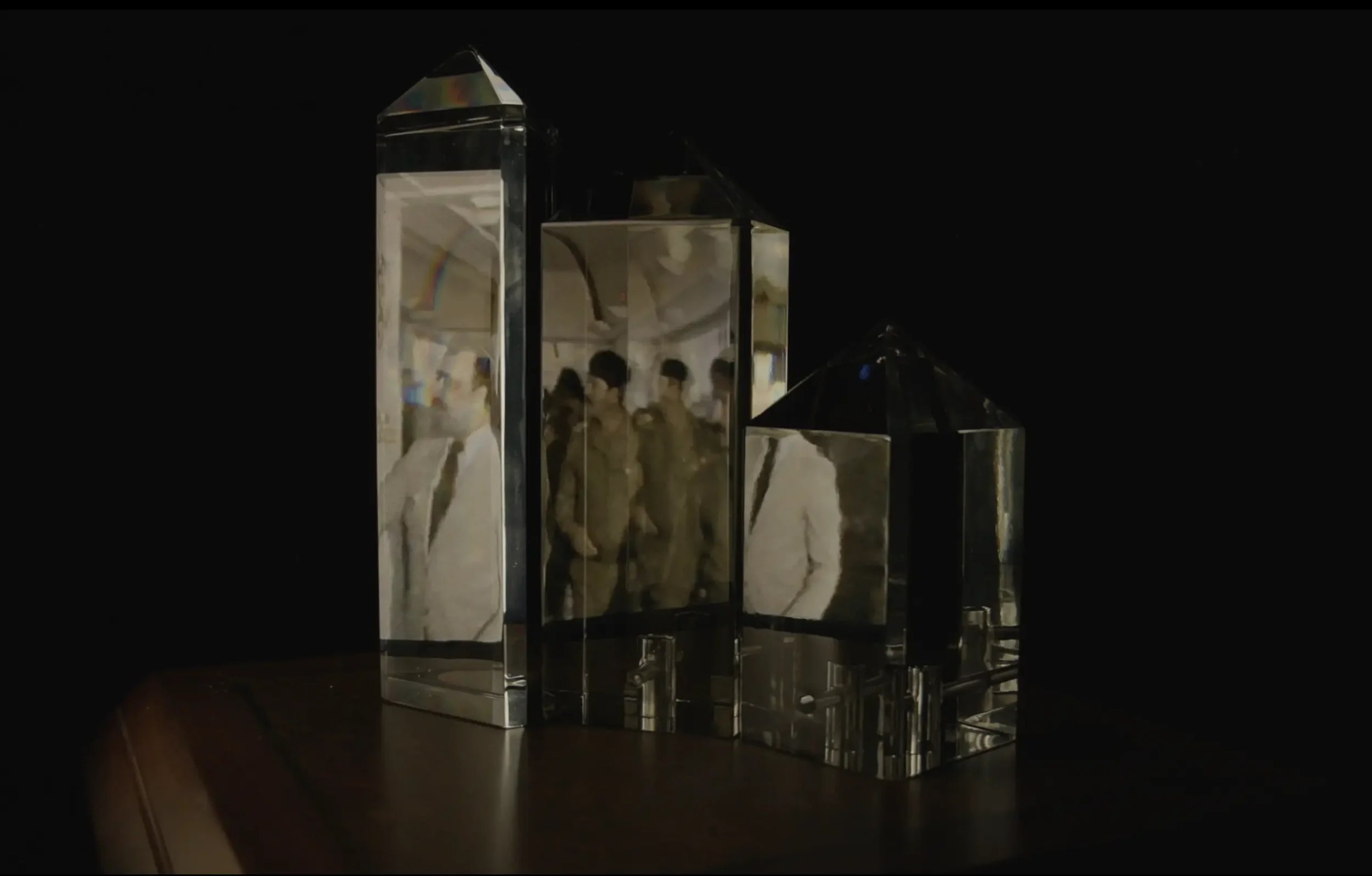 In On Hospitality – Layla Al Attar and Hotel Al-Raheed, the Iraqi artist Layla Al-Attar returns from the dead to tell the story of how a Swedish company built a luxurious hotel in Baghdad, ordered by Saddam Hussein for the 1983 summit of the Non-Alignment Movement. War changed the plans. Layla made a mosaic at the entrance of the hotel, depicting George Bush’s face and the large inscription “Bush is a criminal.”. She was killed in 1993 along with her husband and a housekeeper when an American missile hit her house. In this film, an experiment unfolds that could be described as necromancy: the dead returning to speak to the living about the past, the present, and possible futures. Necromancy, in this sense, becomes an integral part of historiography, using imagination based on archival sources to speculate about the contexts of history. The construction of the hotel in Baghdad was a vast Swedish industrial undertaking at the beginning of the 80s, now largely forgotten. Led by the company Skanska in Kalmar, it involved over a thousand firms, many of them small businesses from the province of Småland. The film uses original artefacts (furniture and glass pieces) from the interior of the hotel, as well as documentary material (by Skanska and others).* The summit of the Non-Aligned Movement never took place, as the Iran–Iraq War erupted. But the hotel’s historical significance peaked during the Gulf War: Hotel Al-Rasheed became the setting of the world’s first televised war. On Hospitality won the First Prize of the Jury of the Ministry of Culture and Science of North Rhine-Westphalia at the Oberhausen International Short Film Festival.