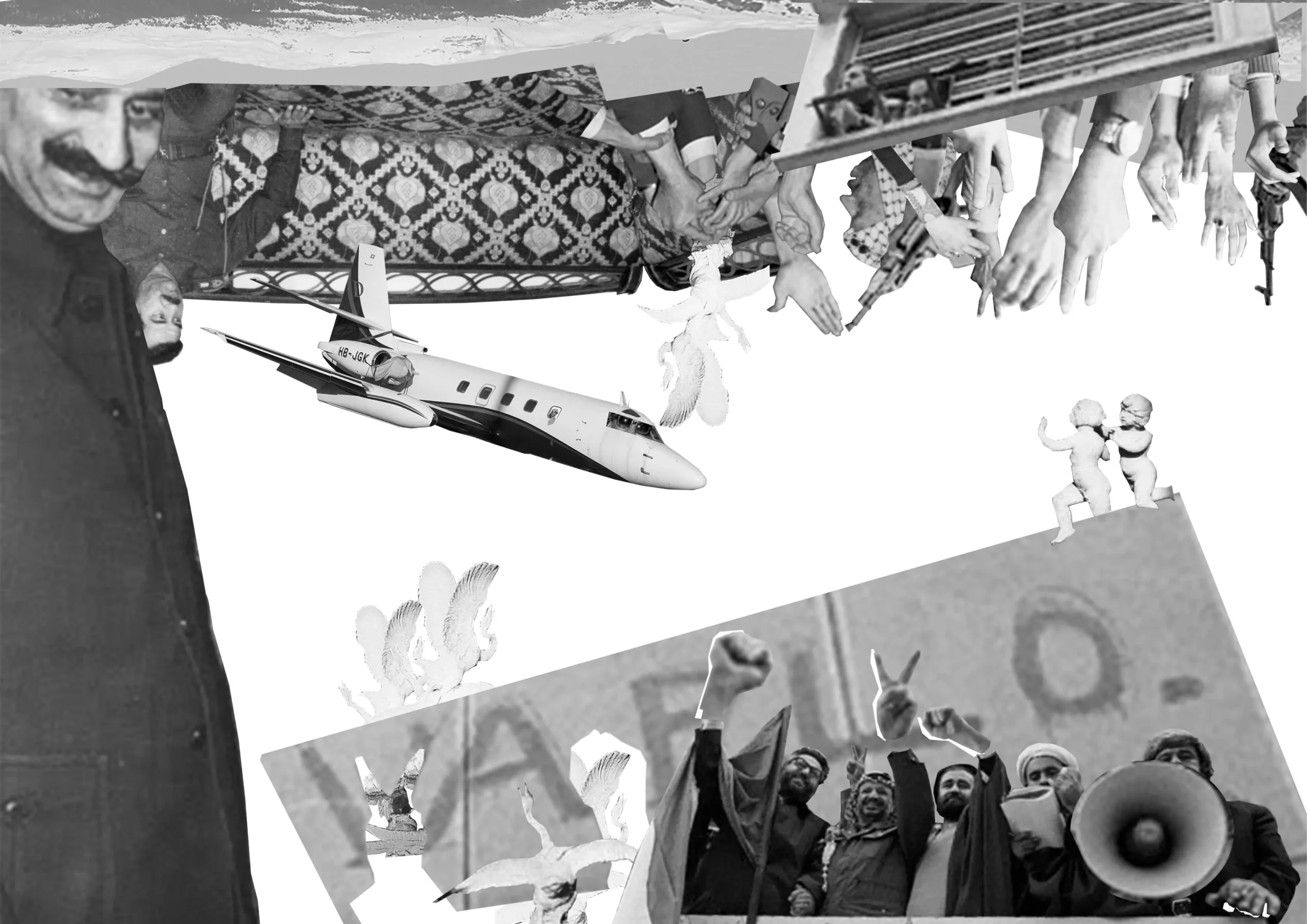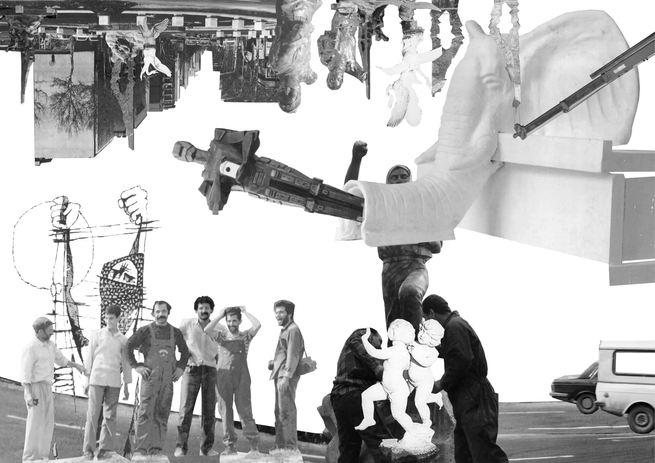 The sculpture was the first public monument ever built in post-revolutionary Tehran. The point of departure for this project is this monument at the centre of Tehran and its historical background. Here, my analysis extends beyond the physical location to examine the spatial context surrounding it, viewed through the lens of contemporary art and political history. The monument in Tehran is a site- and context-specific example that serves as a conceptual point of departure for a diverse array of analogous political contexts and historical entanglements.